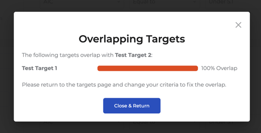 Typically, users prefer to have no overlap between their different targets. If there are respondents that may appear in multiple groups, you will receive a warning. You will likely wish to adjust your targeting criteria so that each group is unique.