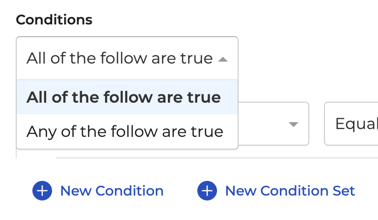 You can create groups of "Condition Sets" where either "All of the following are true" or "Any of the following are true":