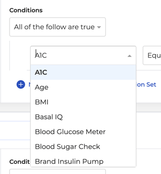 “Conditions” refers to the conditions a respondent must meet in order to be included in a targeting group.