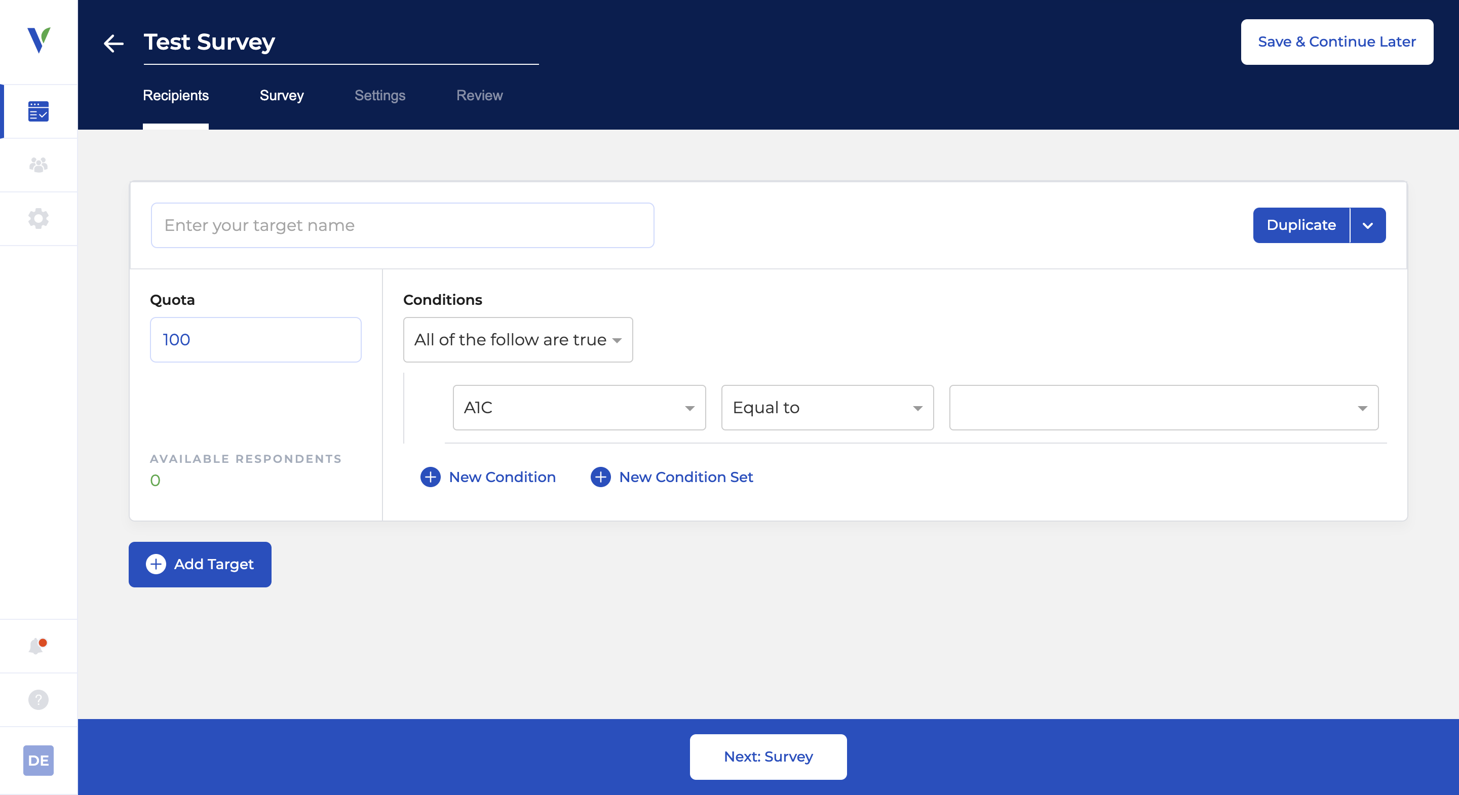 The "Quota" is the number of total respondents you want from the targeting group. The system will automatically manage survey distributions to reach the quota number.